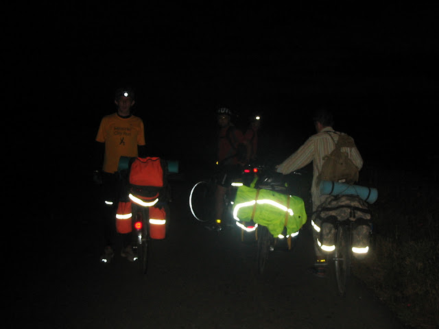 21:20 Веселовка. Смеркалось, но нам таки удалось обнаружить магазин на окраине села. Еще раньше все достали мигалки, фонарики, яркие чехлы от баулов и понавешивали все это добро куда только можно, чтоб нас было хорошо видно на дороге.